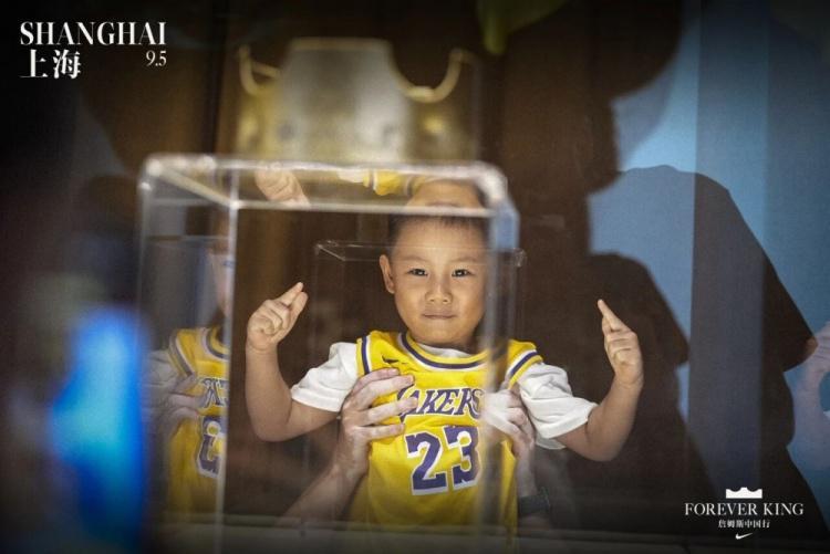 一位身穿23号球衣的小朋友跟随自己的父母来到House of King James的沉浸式展览。他认真端详展柜中的“皇冠”,眼神明亮。那一刻,他仿佛也戴上了属于自己的荣耀,也憧憬着未来属于自己的胜利。