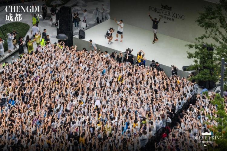 成都万象城耐克店铺门外的球迷见面会上,詹姆斯登台的那一刻,现场化作沸腾的海洋。无数屏幕同时亮起,大雨也浇不灭滚烫的热情——他们以最真挚的方式,回应着偶像的到来。