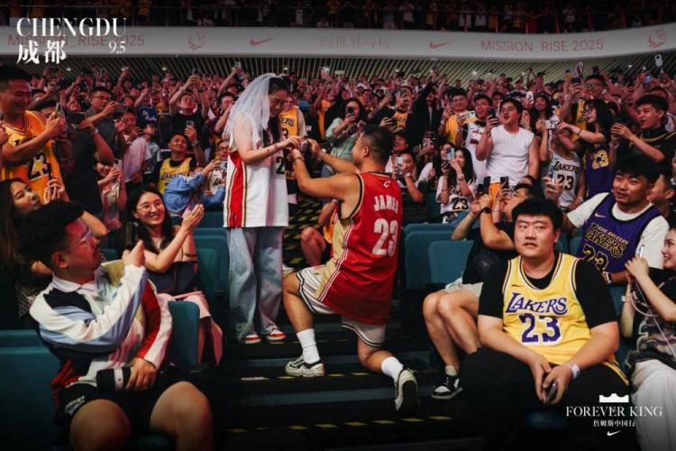 这是在2025“打出名堂”总决赛现场发生的浪漫一幕:一位詹姆斯球迷单膝跪地,向女友求婚。全场欢呼如潮,他们身着23号球衣,完成这场特别的仪式。对于他们来说,这不仅是爱情的见证,更是与自己的偶像詹姆斯一起创造的独一无二的珍贵记忆。